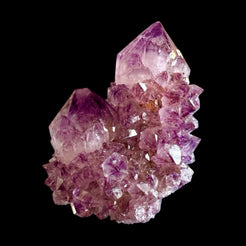 This stunning amethyst Spirit Quartz, also known as Cactus Quartz, displays a radiant array of lavender-to-violet crystals. Two dominant terminations rise gracefully from a sparkling cluster of smaller druzy points, creating a shimmering halo that reflects light from every angle.