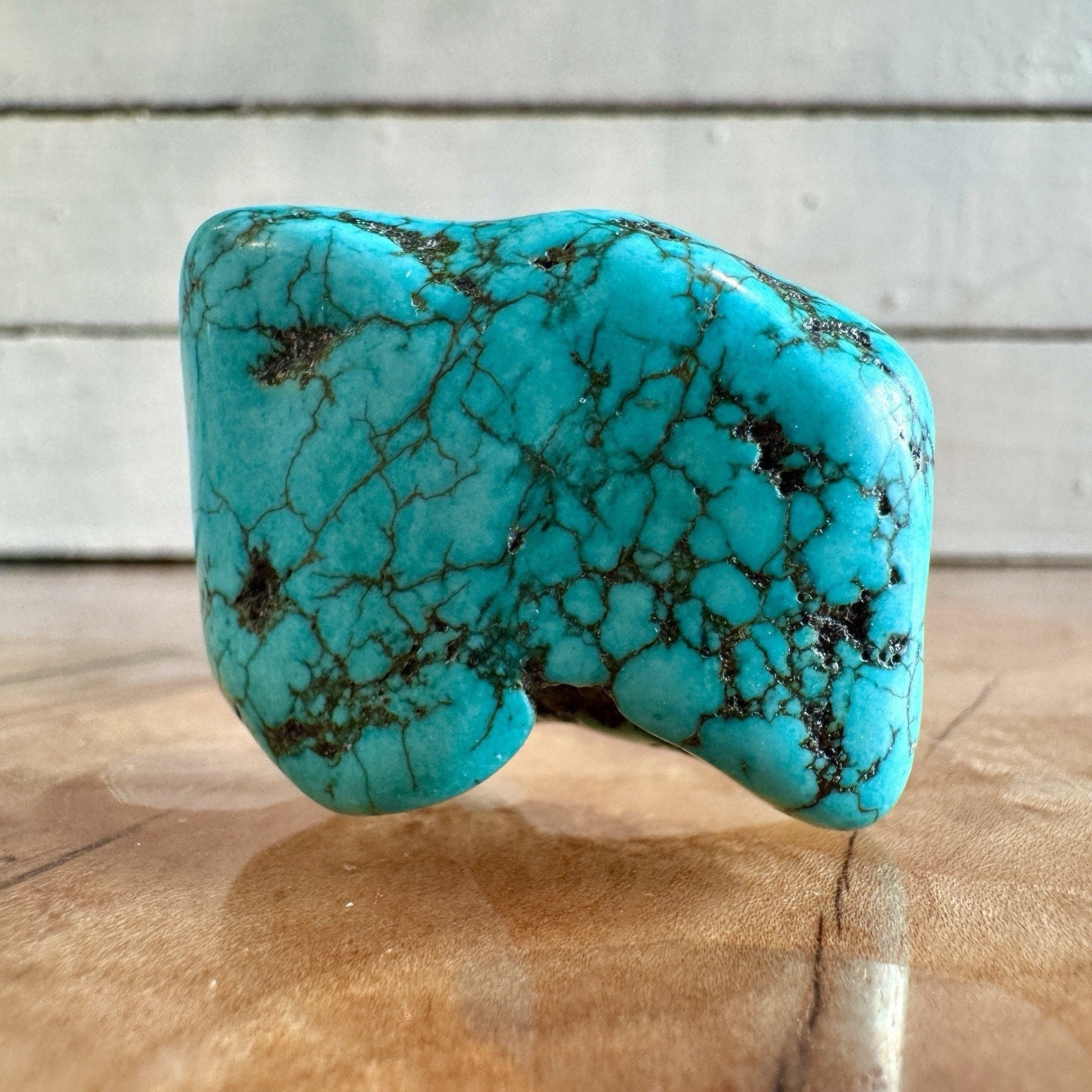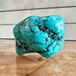 This gorgeous polished turquoise freeform comes from the world-famous Cloud Mountain (Yungai) mines in Hubei Province, China — a locality celebrated for producing some of the brightest and most collectible turquoise in the world.