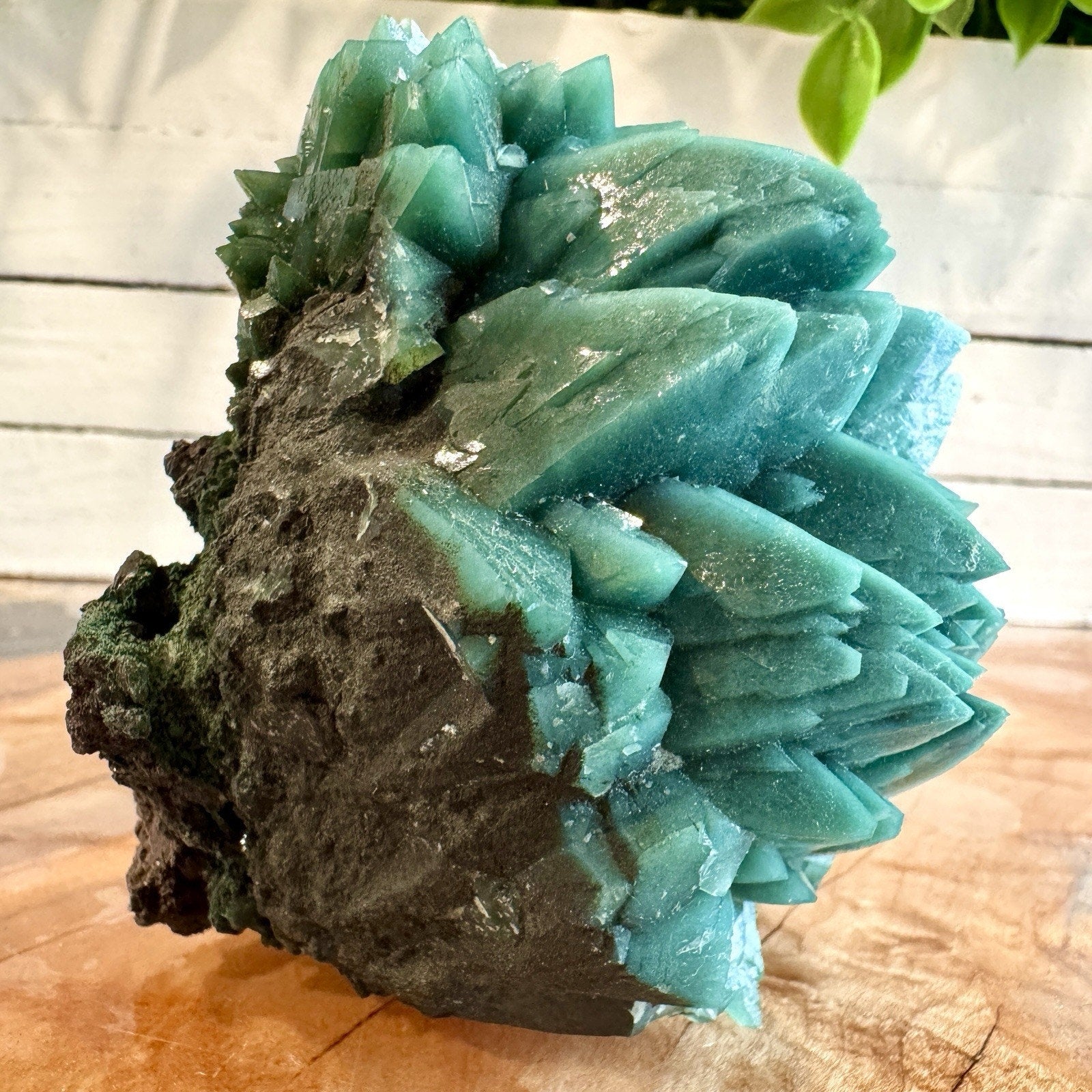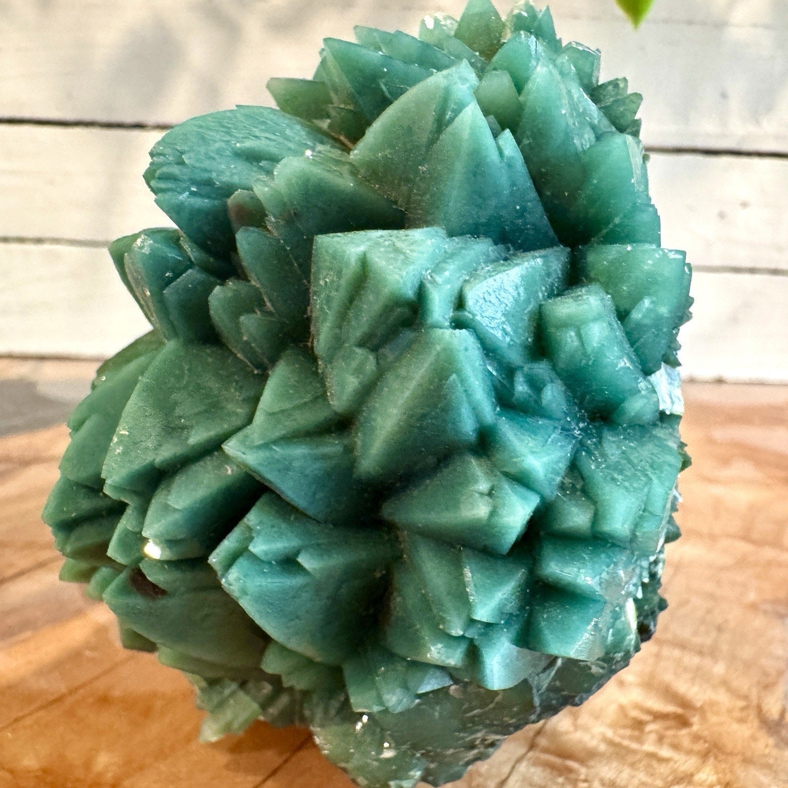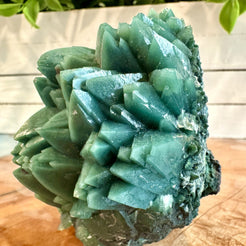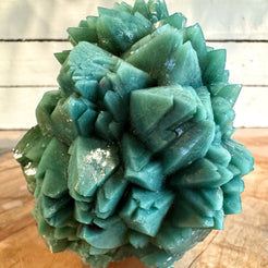 Perfect for both aesthetic display and mineralogical study, this specimen reflects India’s renowned craftsmanship of nature — a tangible expression of harmony between form, color, and energy. Apophyllite is celebrated for its clarity and calming presence, while the celadonite component introduces an earthy, grounding tone, making this an exceptional choice for both collectors and enthusiasts of natural crystal beauty.
