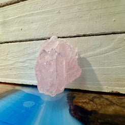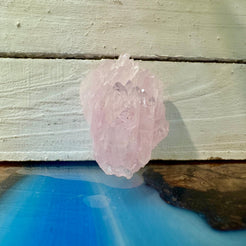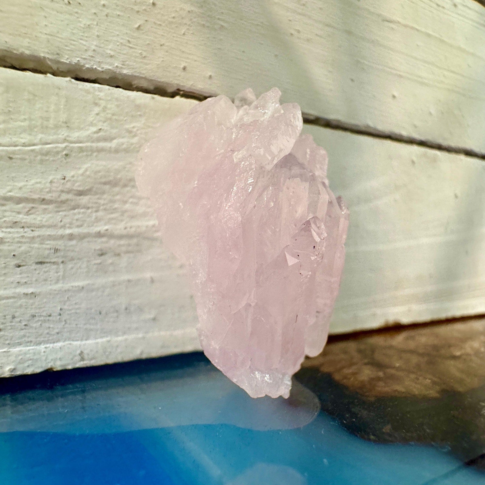 This crystallized Rose Quartz specimen carries a soft, luminous pink tone preserved in rare natural crystal form rather than the more common massive structure seen in most rose quartz. Subtle internal glow moves through the crystal body, while naturally developed surface growth and preserved terminations reveal the mineral’s true structural character.