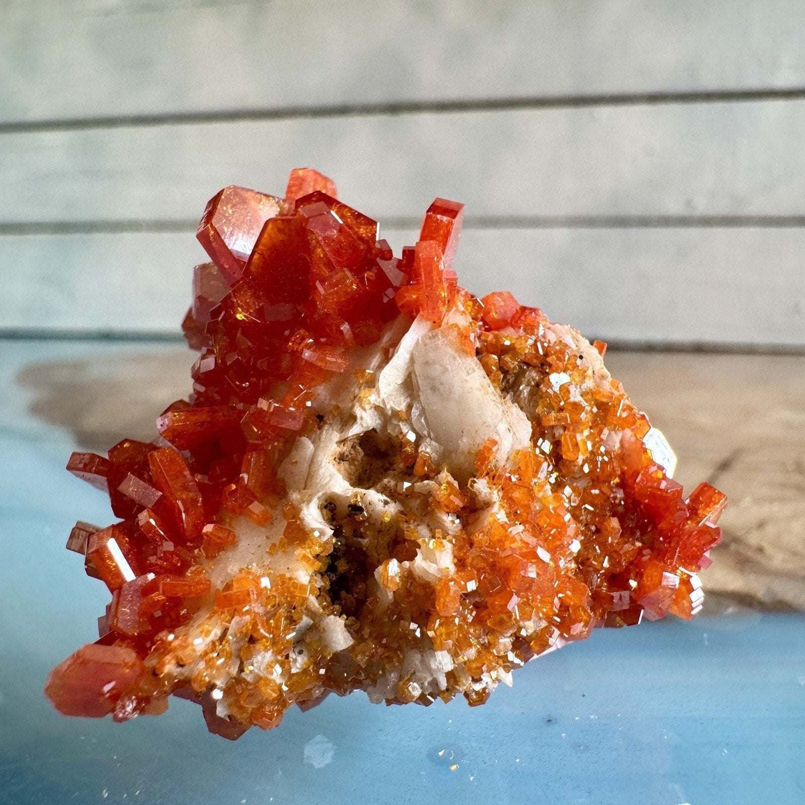 Mibladen vanadinite has long set the global standard for this species. The rich coloration, gemmy luster, and perfect hexagonal crystal habit seen here capture everything collectors prize in Moroccan minerals.